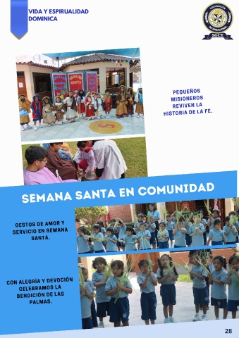 VIDA Y ESPIRUALIDAD DOMINICA PEQUEÑOS MISIONEROS REVIVEN LA HISTORIA DE LA FE. Semana Santa en Comunidad GESTOS DE AMOR Y SERVICIO EN SEMANA SANTA. CON ALEGRÍA Y DEVOCIÓN A CELEBRAMOS LA BENDICIÓN DE LAS PALMAS. 28