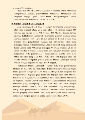 dalam Dinasti Bani Abbasiyah mencapai 37 orang (Murodi, 2015: 7).