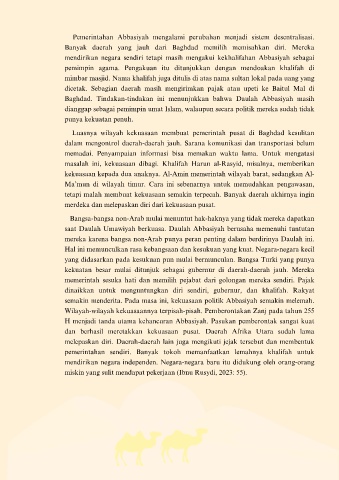 Pemerintahan Abbasiyah mengalami perubahan menjadi sistem desentralisasi.