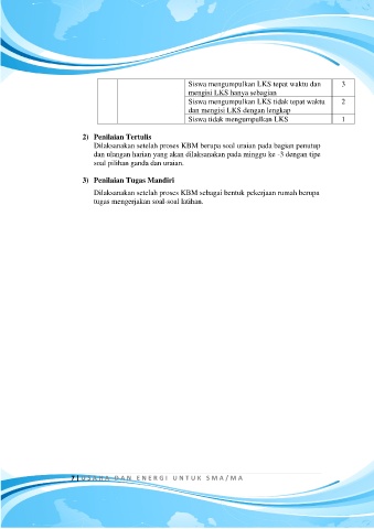 Siswa mengumpulkan LKS tepat waktu dan 3