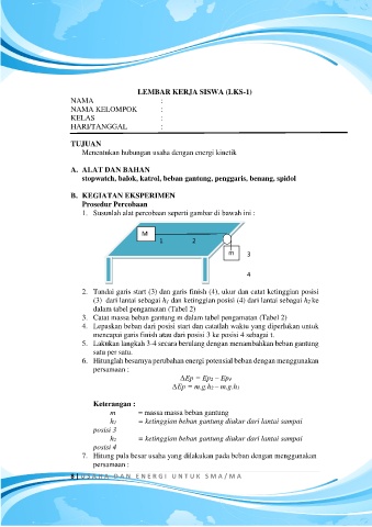 6. Hitunglah besarnya perubahan energi potensial beban dengan menggunakan