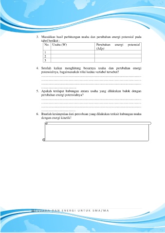 4. Setelah kalian menghitung besarnya usaha dan perubahan energi