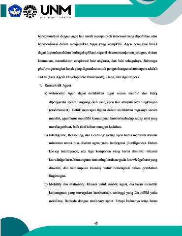 a) Autonomy: Agen dapat melakukan tugas secara mandiri dan tidak