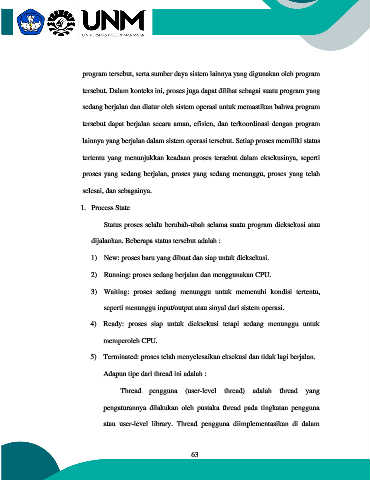 lainnya yang berjalan dalam sistem operasi tersebut. Setiap proses memiliki status