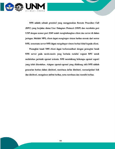NFS adalah sebuah protokol yang menggunakan Remote Procedure Call