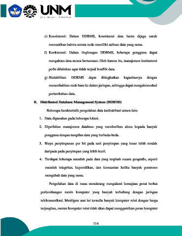 e) Konsistensi: Dalam DDBMS, konsistensi data harus dijaga untuk