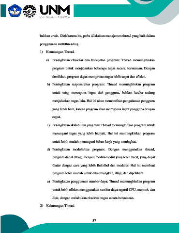 d) Peningkatan modularitas program: Dengan menggunakan thread,