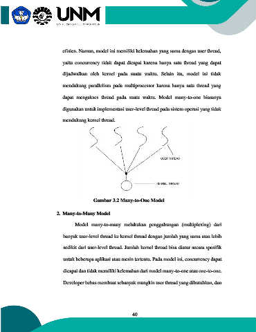 efisien. Namun, model ini memiliki kelemahan yang sama dengan user thread,
