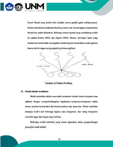 kernel thread yang terkait bisa berjalan secara paralel pada multiprocessor.