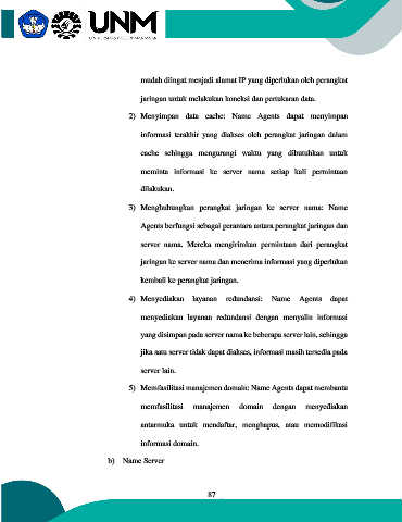 2) Menyimpan data cache: Name Agents dapat menyimpan