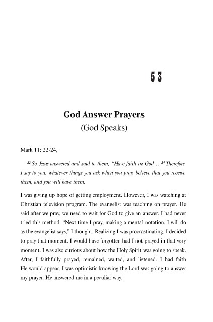 my prayer. He answered me in a peculiar way.