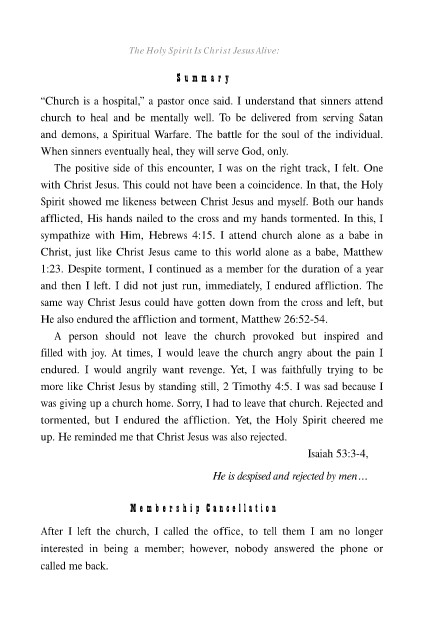 tormented, but I endured the affliction. Yet, the Holy Spirit cheered me