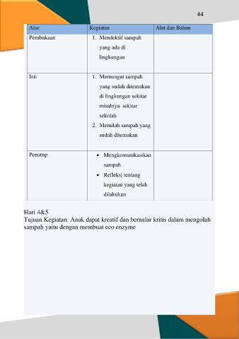Tujuan Kegiatan: Anak dapat kreatif dan bernalar kritis dalam mengolah