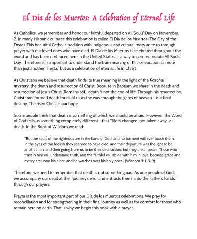 prayer with our loved ones who have died. El Día de los Muertos is celebrated throughout the