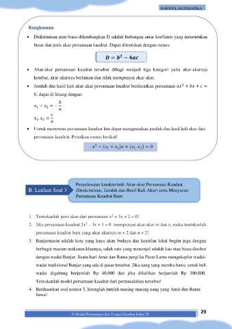 B. Latihan Soal 3 (Deskriminan, Jumlah dan Hasil Kali Akar) serta Menyusun