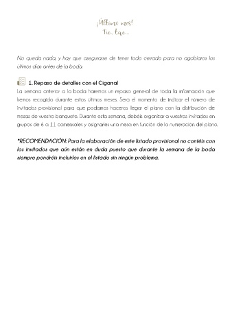 La semana anterior a la boda haremos un repaso general de toda la información que