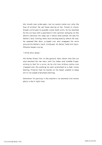 h u e o f a l c o h o l . H e s a t t h e r e s t a r i n g a t h e r , f r o z e n i n s h o c k .