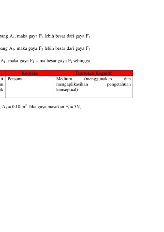 b. Jika luas penampang A 2 lebih besar dari luas penampang A 1, maka gaya F 2 lebih besar dari gaya F 1