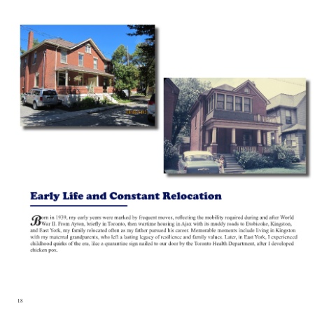 and East York, my family relocated often as my father pursued his career. Memorable moments include living in Kingston