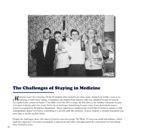 Despite the challenges, those who stayed formed a close-knit group. The Meds’ 63 class was small and intimate, which