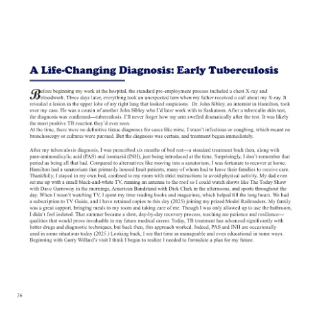 over my case. He was a cousin of another John Sibley who I’d later work with in Saskatoon. After a tuberculin skin test,