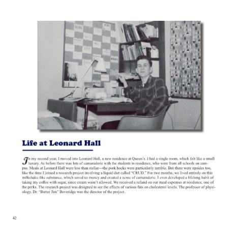 n my second year, I moved into Leonard Hall, a new residence at Queen’s. I had a single room, which felt like a small