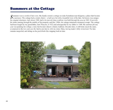 ummers were a world of their own. My family owned a cottage on Lake Sydenham near Kingston, a place that became