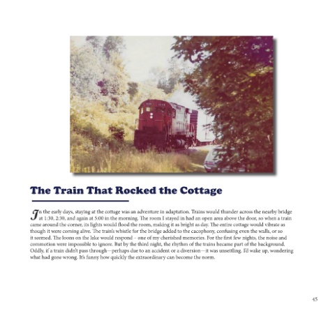n the early days, staying at the cottage was an adventure in adaptation. Trains would thunder across the nearby bridge