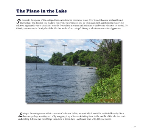 this day, somewhere in the depths of the lake lies a relic of our cottage’s history, a silent monument to a bygone era.