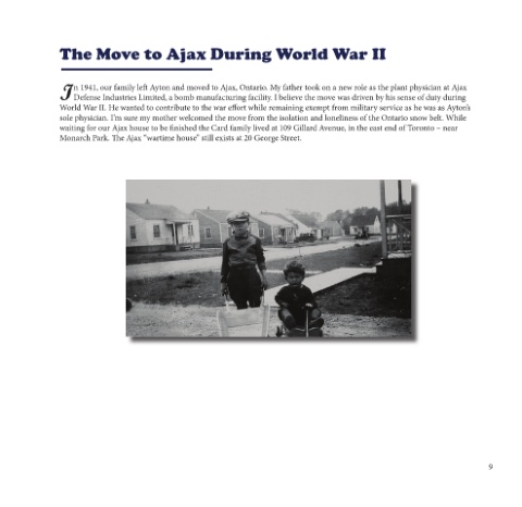 n 1941, our family left Ayton and moved to Ajax, Ontario. My father took on a new role as the plant physician at Ajax
