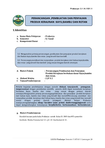 a. Nama Mata Pelajaran : Prakarya