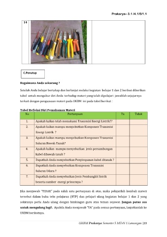 terkait dengan penguasaan materi pada UKBM ini pada tabel berikut :