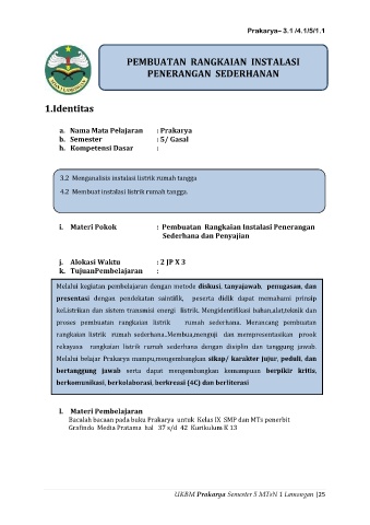 i. Materi Pokok : Pembuatan Rangkaian Instalasi Penerangan