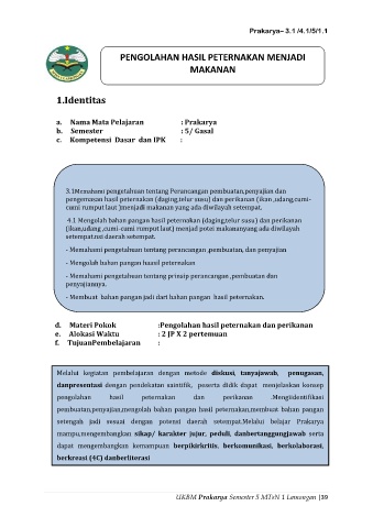 d. Materi Pokok :Pengolahan hasil peternakan dan perikanan