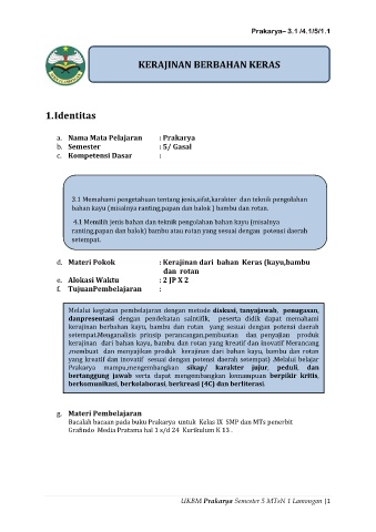 d. Materi Pokok : Kerajinan dari bahan Keras (kayu,bambu