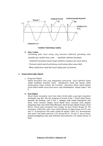 perubahan yang tiba- tiba dan mempunyai besaran 0 dan 1. Sinyal digital hanya