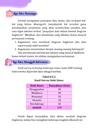 Hasil survey terhadap beberapa siswa suatu SMP tentang