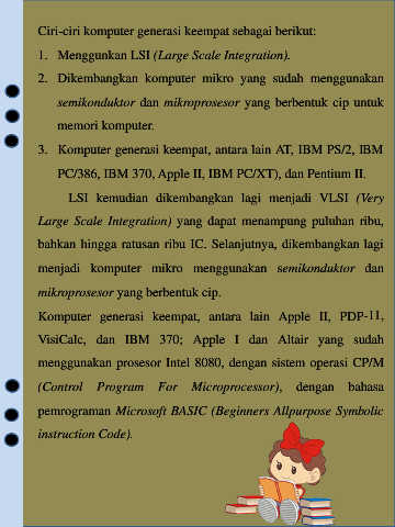 Ciri-ciri komputer generasi keempat sebagai berikut: