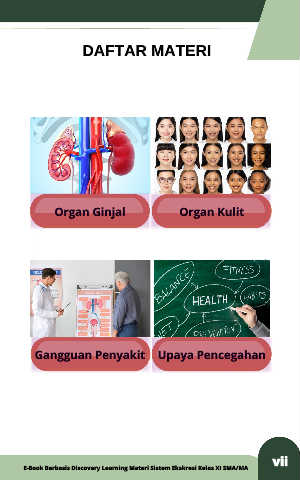 DAFTAR MATERI Organ Ginjal Organ Kulit Gangguan Penyakit Upaya Pencegahan vii E-Book Berbasis Discovery Learning Materi Sistem Ekskresi Kelas XI SMA/MA