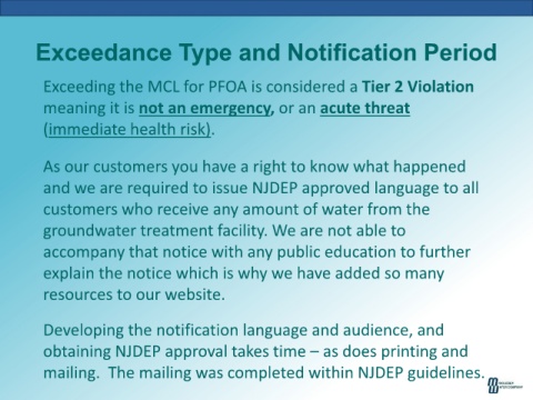 Exceeding the MCL for PFOA is considered a Tier 2 Violation