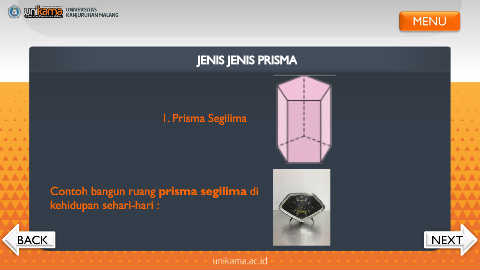 JENIS JENIS PRISMA 1. Prisma Segilima Contoh bangun ruang prisma segilima di kehidupan sehari-hari :