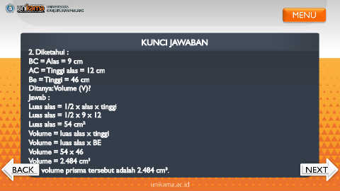 Jadi volume prisma tersebut adalah 2.484 cm³.