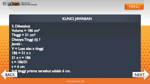 Jadi tinggi prisma tersebut adalah 6 cm.