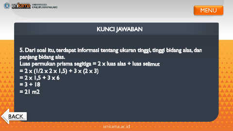 5. Dari soal itu, terdapat informasi tentang ukuran tinggi, tinggi bidang alas, dan