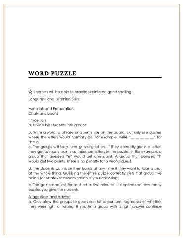 b. Write a word, a phrase or a sentence on the board, but only use dashes