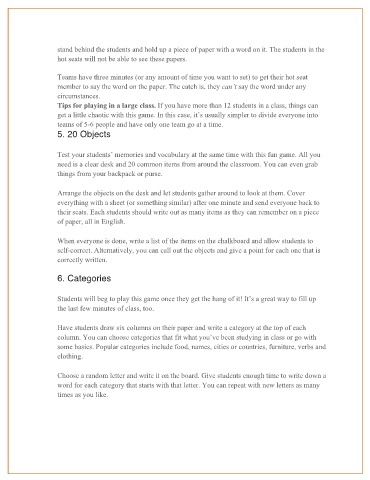 stand behind the students and hold up a piece of paper with a word on it. The students in the
