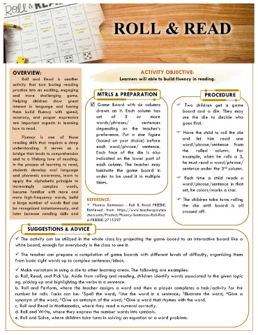 a. a. Roll, Read, and Pick Up. Aside from rolling and reading, children identify words associated to the given topic
