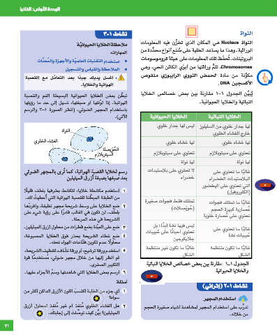 يُب ِّين الجدول  1-1مقارنة بين بعض خصائص الخلايا