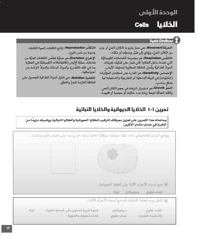 تمرين  1-1الخلايا الحيوانية والخلايا النباتية
