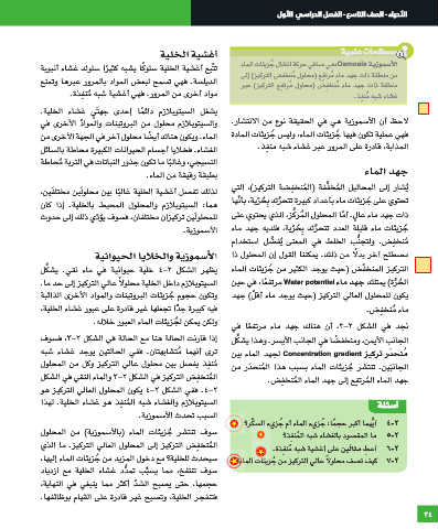 ت ّتبع أغشية الخلية سلو ًكا يشبه كثي ًرا سلوك غشاء أنبوبة من منطقة ذات جهد ماء ُمرت ِفع (محلول ُمنخفض التركيز) إلى